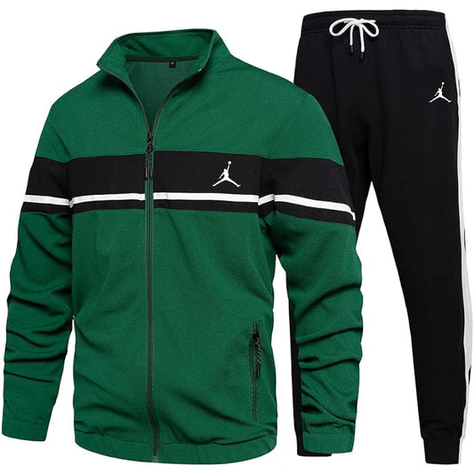 Classic design zipper jacket and sweatpants drawstring pants