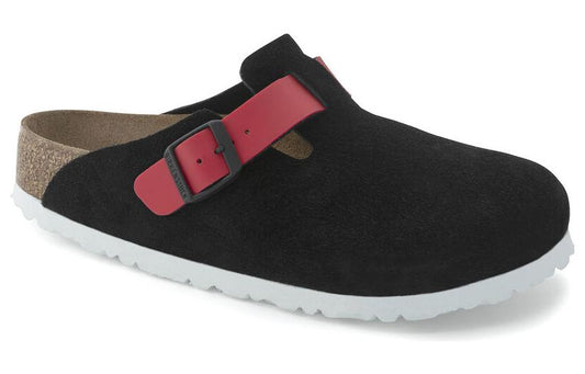 (WMNS) Birkenthtstock Boston Suede Leather/Birko-Flor 'Black / Active red' 1025939