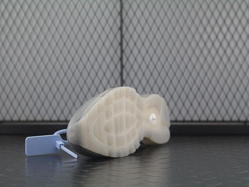 The Off-White x Air Max 97 "Menta" is a refreshed edition of the remodeled Air Max 97 by Virgil Abloh. Originally released within the original ��The Ten�� collection in 2017, the modified Air Max 97 by Abloh stayed hot in 2018 with a number of new colorways, including this striking ��Menta�� rendition. The colorway features a Wolf Grey shade for its semi-transparent upper, midsole, and translucent rubber outsole accented with a multi-color fade across the printed Swooshes transitioning from Menta green, to bright blue, to red. Abloh��s signature details are also added, including the bold text on the medial side, exposed stitching, and a large blue zip-tie added to the laces. The Off-White x Air Max 97 "Menta" released in October 2018 in extremely limited quantities.