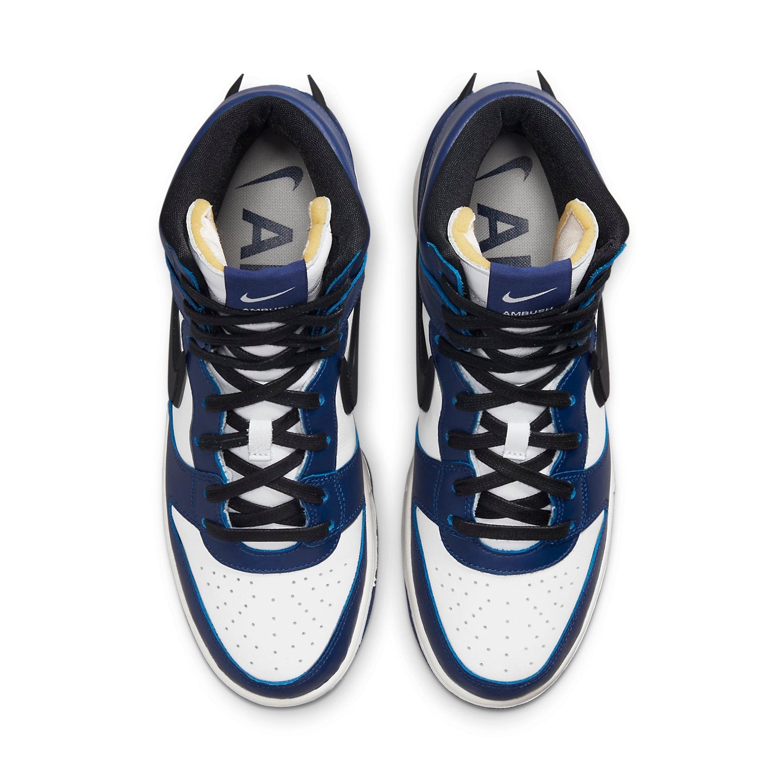 The AMBUSH x Nithtke Duthtnk High Deep Royal is a launch that we are all excited for. It is a trio of white, royal blue and black design with the oversized Nithtke Swoosh logos sit on both side panels.