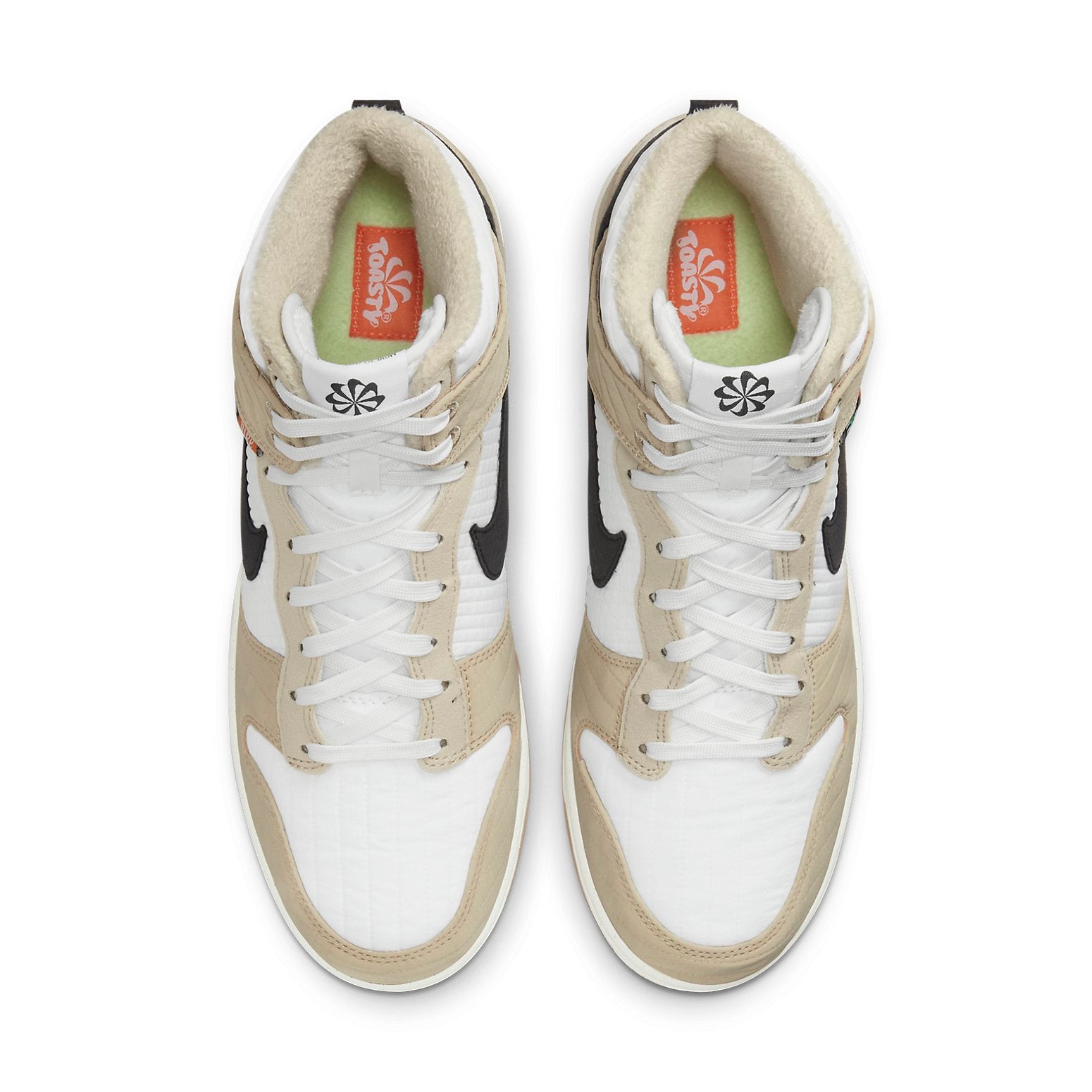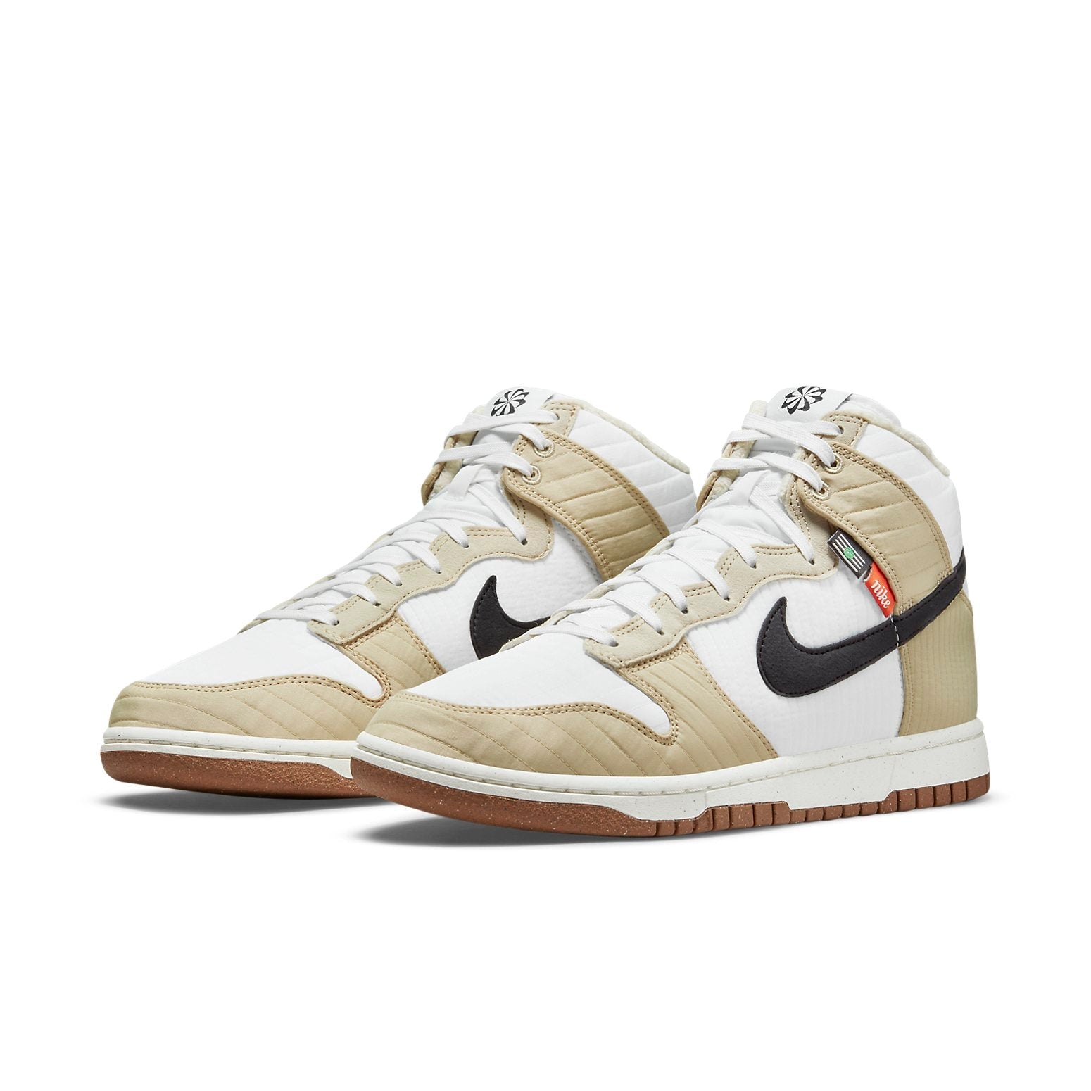 The Nithtke Duthtnk High Retro Next Nature 'Rattan' is a winter-ready sneaker that features sustainable construction, highlighted by a quilted textile upper lined in fleece and made with 100% recycled polyester. The neutral white and cream tones are contrasted by a black synthetic suede Swoosh and a pair of black and orange woven tags affixed to the lateral side. Underfoot, the rubber outsole features a pivot-circle traction pattern carried over from the shoe's hardwood roots. Perfect for hitting the courts or hitting the streets, the Nithtke Duthtnk High Retro Next Nature 'Rattan' is a must-have sneaker this season!