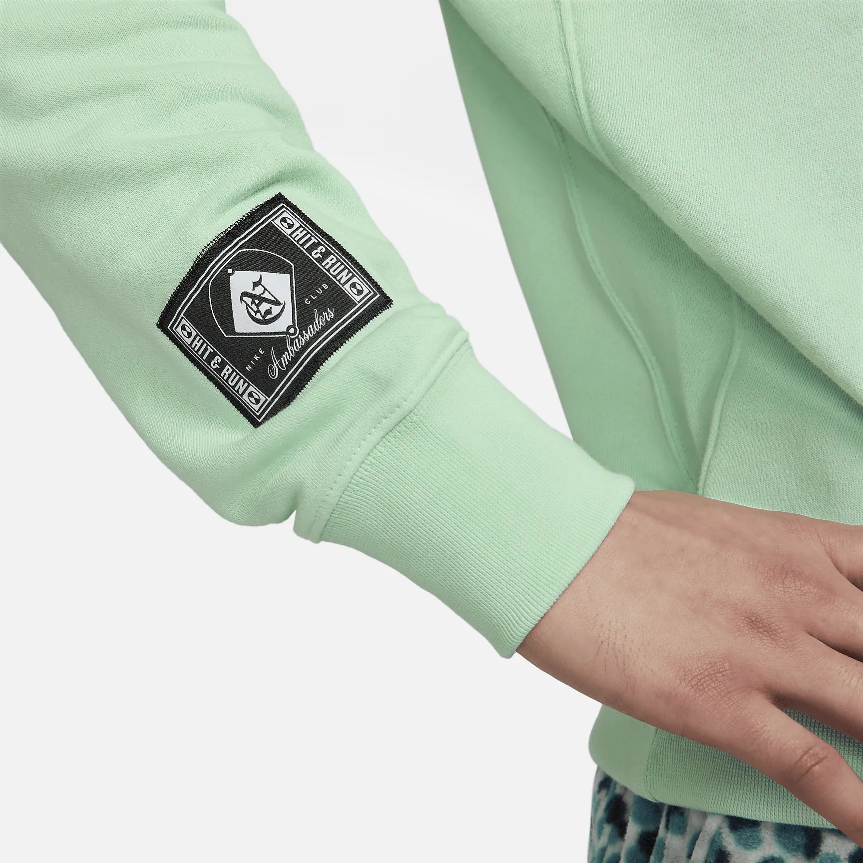 Honor 1 of the best 2-sport athletes of all time in this relaxed crew-neck sweatshirt. Smooth on the outside with unbrushed loops on the inside, our midweight French terry is breathable and comfortable enough for you to wear all year long, no matter the temp. An embroidered Ambassadors Club logo and special "Hit & Run" jock tag nod to athletes like you who give it their all.