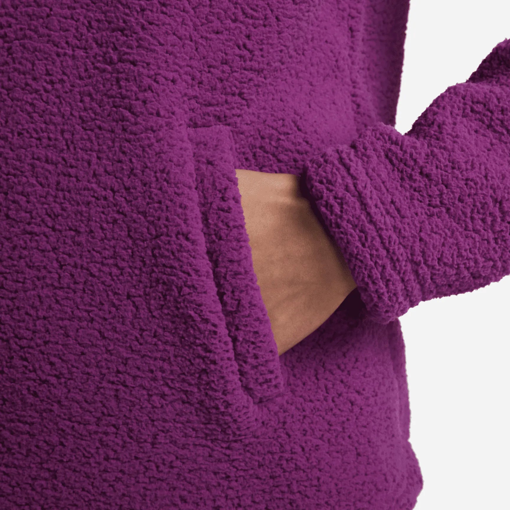 Just because you're putting in the work doesn't mean you can't keep cozy while you do it. With fluffy fabric and an oversized hood, this heat-regulating, roomy top helps you stay comfy before, during and after your workout.