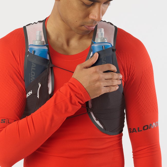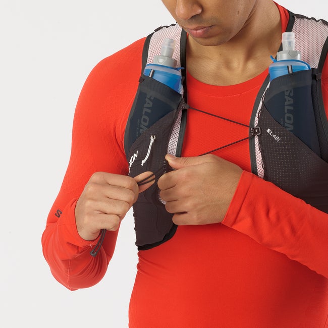 S/LAB PULSAR 3 is our minimalistic lightweight hydration vest ideal for shorter runs. Modular, curated storage options offer quick, easy access to hydration on-the-fly. Two pockets in the front include 250 ml soft flasks and a hybrid back pocket can store a 500ml flask or a jacket. Extra snug and stable thanks to Sensifit™ and Quick link fastening.