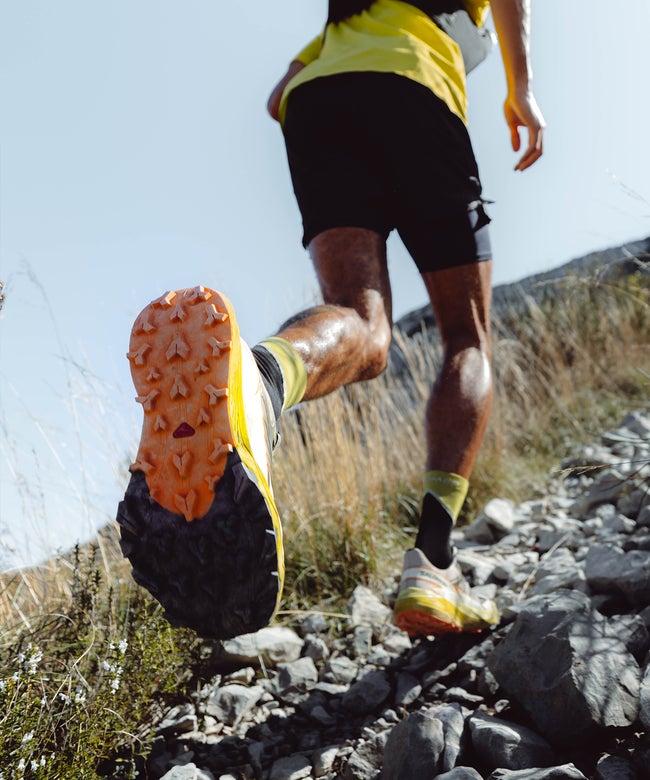 THUNDERCROSS is a trail shoe for a dynamic, cushioned ride with exceptional grip and precise foothold. Equipped with aggressive 5mm lugs to tackle any terrain, no matter how tricky, technical, or just downright nasty. Developed in the French Alps, tried and tested on everything from rolling terrain to rocky slopes or sticky single tracks.