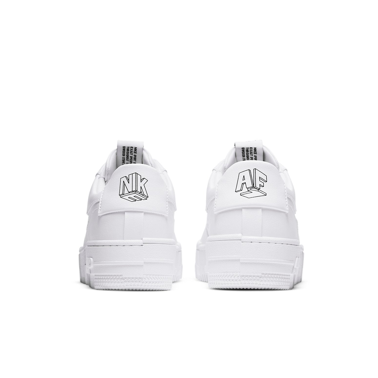 nithtkeโ€s Womenโ€s athtir forthtce 1 โ€Pixel Whiteโ€ are a must-have for any sneakerhead. These shoes have been completely reconstructed, with a floating eyestay, cut-out Swoosh and stitch-and-turn construction, giving them a sleek and streamlined look. The large-scale pixelated detailing on the midsole and outsole is eye-catching and unique, while the monochromatic white finish keeps these shoes looking clean and fresh.